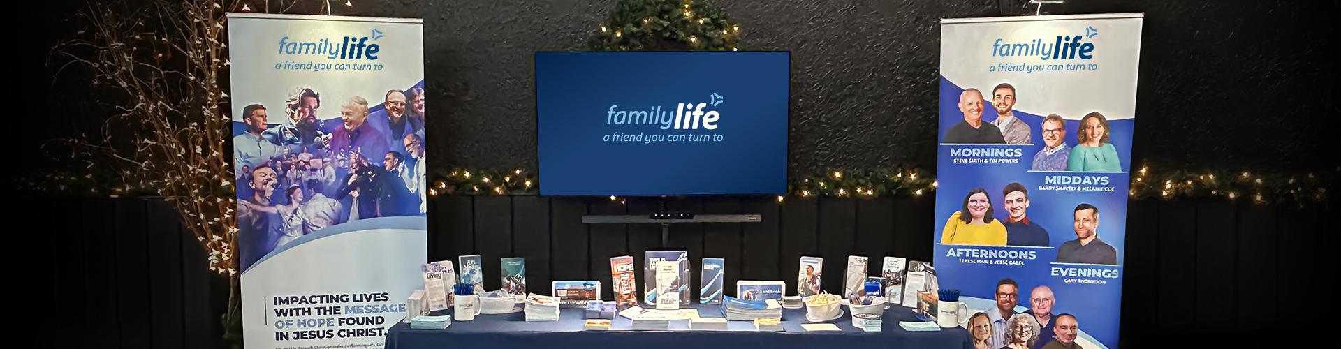 Family Life will set up a display* in the lobby, and the church will do a brief 60-second mention in the service announcements that Family Life is there at the church. A staff member will be available before and after the service to answer any questions your congregation may have about Family Life.
