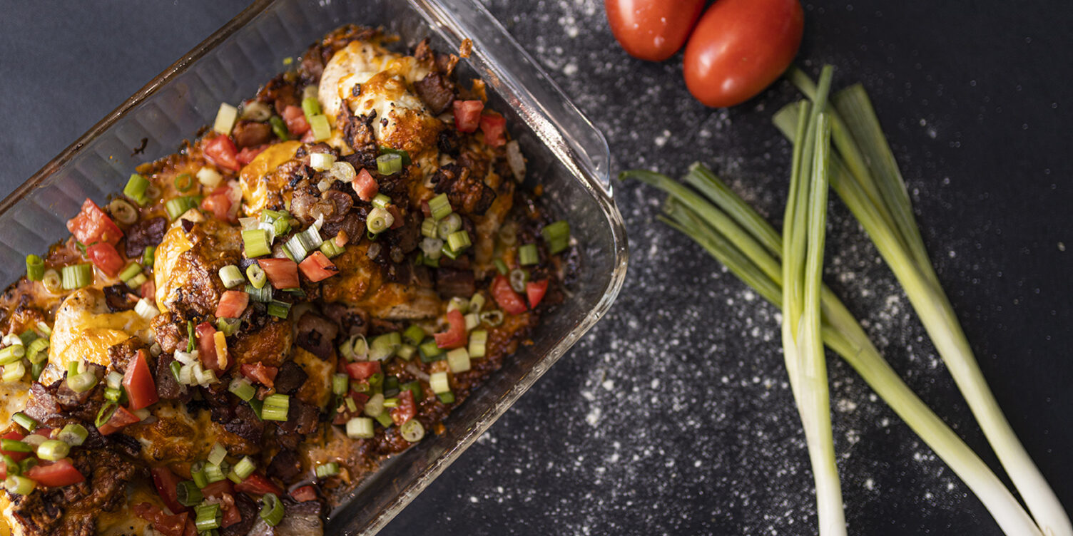 Mix the cream cheese and the ranch seasoning together. Place the chicken in a 9×13 pan. Spread the cream cheese mixture over the chicken. Top with most of the bacon and onions and all the cheese. Bake at 350 degrees for 20 minutes. Top with a little extra bacon and tomatoes and scallions.